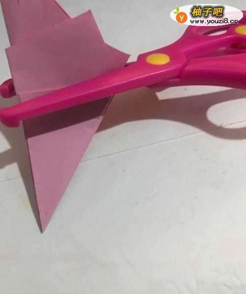 5第五步 剪去多余的彩纸之后 再把每一条沿角的折痕捏一遍 然后再把它折叠成为一个双边三角形