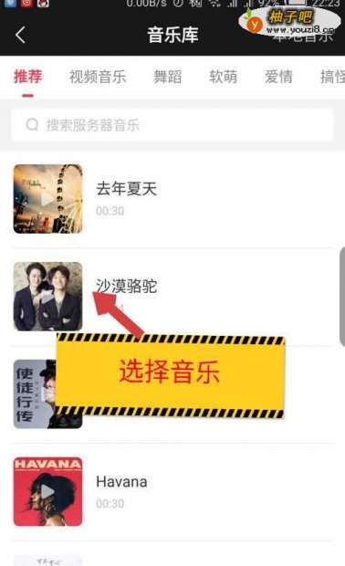 5照片添加完成后,就要选择音乐,在音乐库里面,点击音乐。