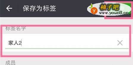 3在标签对话框里填写组名并点击【保存】