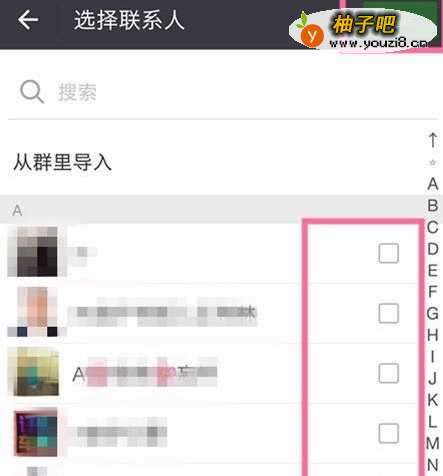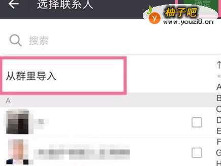 4还有一种快速分组的方法,就是把以前的聊天群直接编辑成为组。在选择联系人菜单栏里,点击【从群里导入】