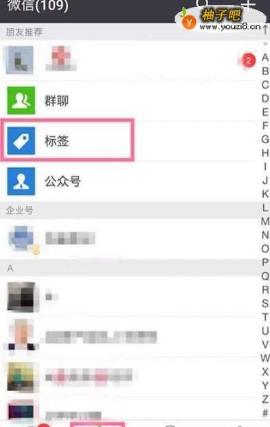 打开微信,选择通讯录点击菜单栏里的【标签】