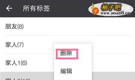 6如果想要删除一个组,直接长按这个组然后在弹出的选择菜单栏里点击删除即可