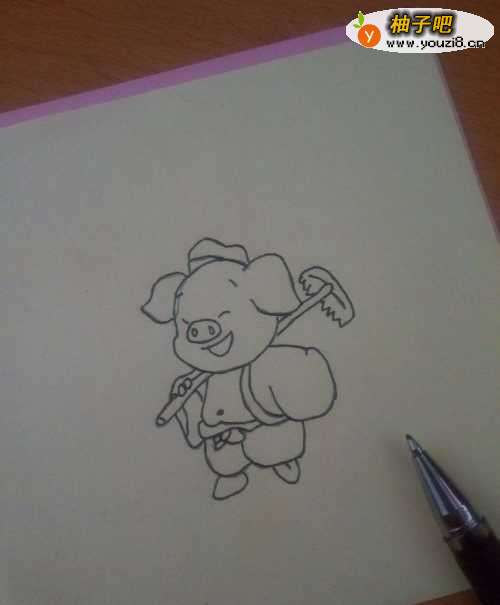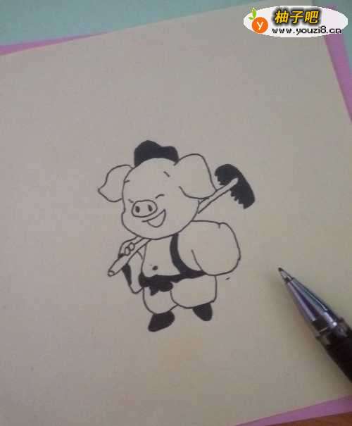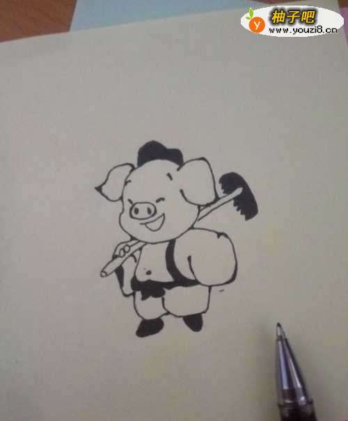3用圆珠笔把画好的猪八戒线条加深