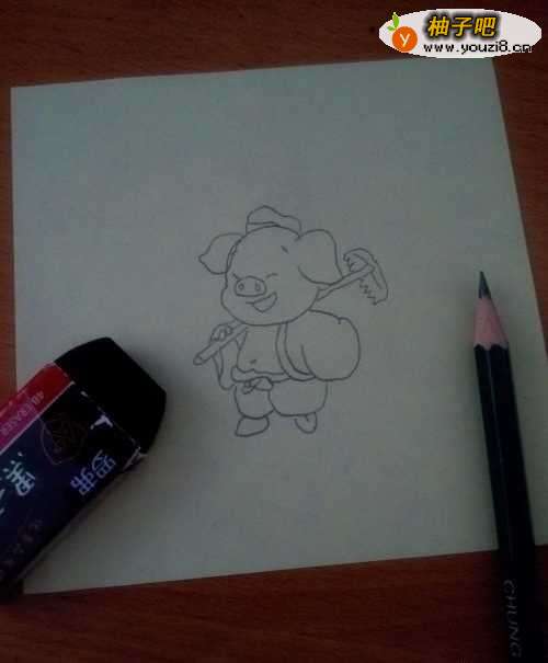 2拿出铅笔和一张纸,并在纸上画出一只猪八戒