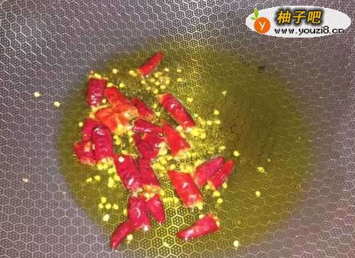 3接下来就可以起锅热油,油尽量的多一点,因为白菜“吃油”,油热后下入辣椒煸香。