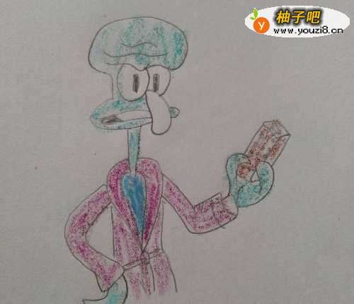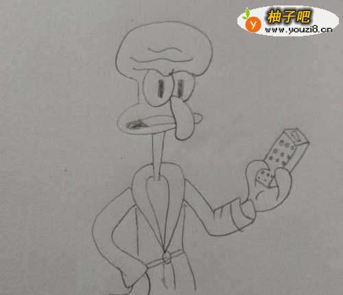 动画片海绵宝宝里面有一个非常讨厌海绵宝宝的邻居,那就是章鱼哥,今天我们画的是拿着手机的章鱼哥。