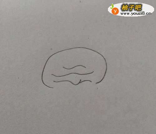 我们先画一个向下的长一点的半圆形做章鱼哥的脑袋,然后我们在它的头上面画上一些曲线皱纹