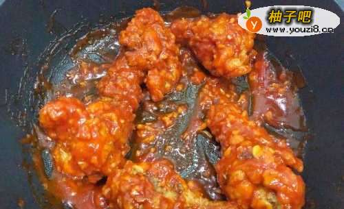 11把炸鸡翅倒进酱汁里翻炒均匀,再撒上白芝麻即可