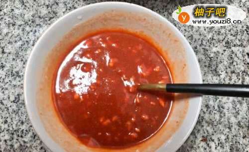 3制作酱汁:把番茄酱、蒜末、韩式辣酱、蜂蜜、少量清水混合搅拌均匀