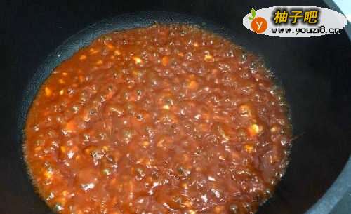 10把制作好的酱汁倒进另一个干净的锅里,开小火熬煮至冒泡即可