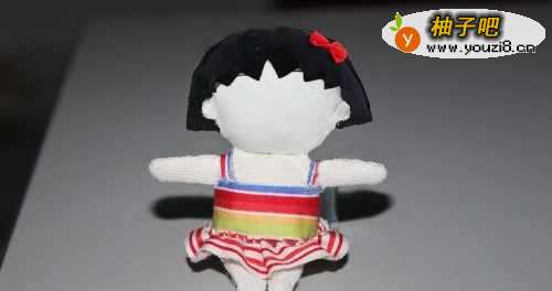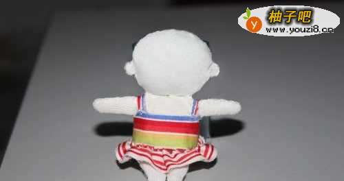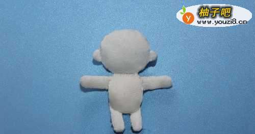 7然后将头和身体缝到一起,将四肢缝到身体上,然后缝上耳朵。