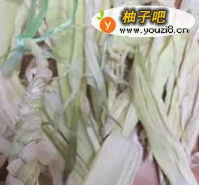 把玉米外面的老叶子去掉,留下嫩一些的,凉晒到微微变黄,叶子柔软的程度,并将顶端连接根部的地方减掉,便于编平整。