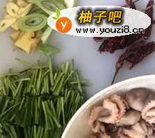 食材,热菜八抓鱼去掉牙齿。眼睛也可以去掉。我把头和身体切开了。小的八抓鱼不切也行。