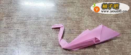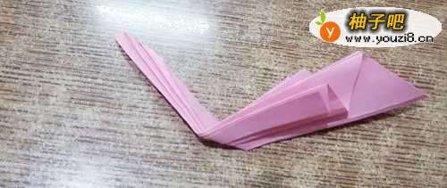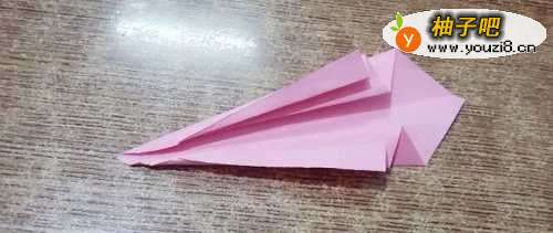 6将尖头部分的三分之二处折叠出孔雀的颈部