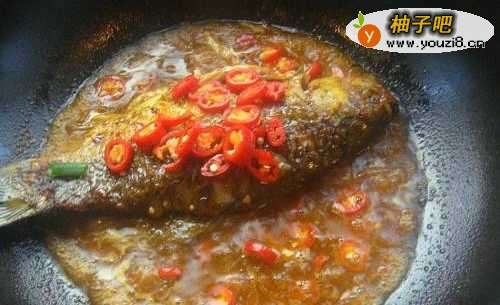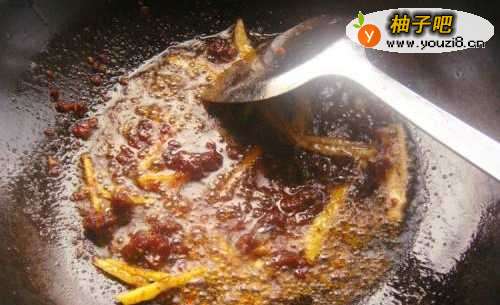9待锅内汤汁所剩不多时,加入辣椒圈继续煮1分钟