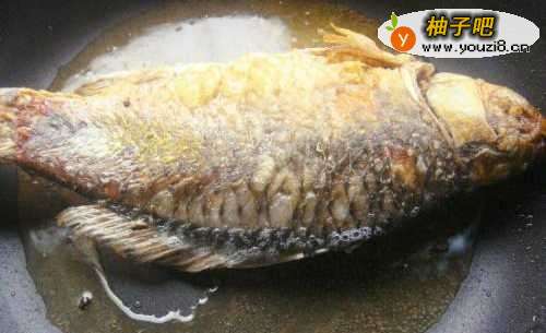 8接着把煎好的鲫鱼下到汤里,途中放适量盐与生抽调味,大火炖