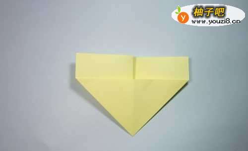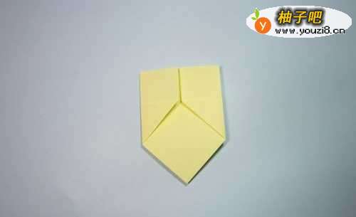 8第8步、将上侧的两条边,沿着折痕分别翻折下来(一面翻折至正面,一面翻折至背面)。