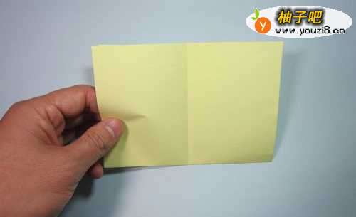 2第2步、再将两条短边对折在一起,两条边对齐,折痕压好。