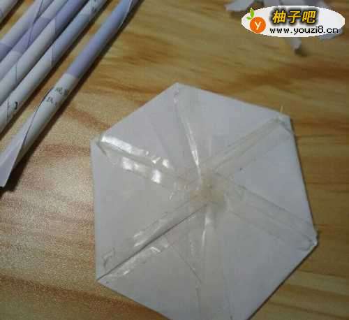 3做出一个六边形的形状,然后在边的地方加上双面胶。
