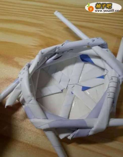 5开始编,前一个放到上一个上方。最后一圈后,最后的纸卷放到上一个空隙里固定。循环往复,直至完成。
