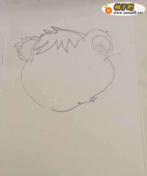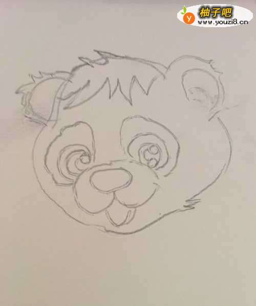 2第二步 再画上熊猫的脸部轮廓 和它夸张的几缕头发