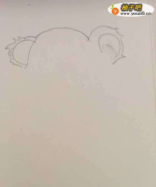 第一步 先画上熊猫的两只圆圆的耳朵 和它的天灵盖