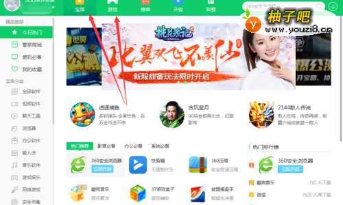 2第二步,打开360软件管家,我们可以看到上方有五个栏,前两个可以搜索下载东西,切记!