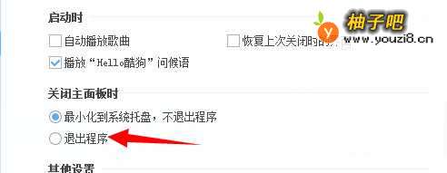 7设置完毕点击下方【确定】,此时关闭酷狗,可以看到酷狗已经彻底关闭