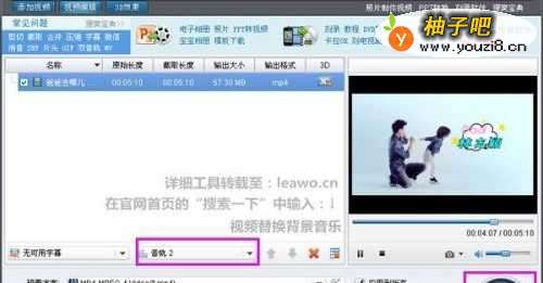 6下面就是开始视频替换背景音乐的设置。想要把视频替换成新加的音乐文件的话,选择“音轨2”,然后点击右下角的“生成”按钮(默认状态下是“音轨1”的)。在这可以选择需要生成的其它视频格式的。