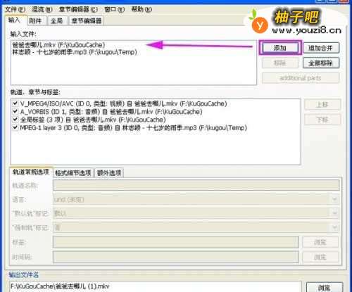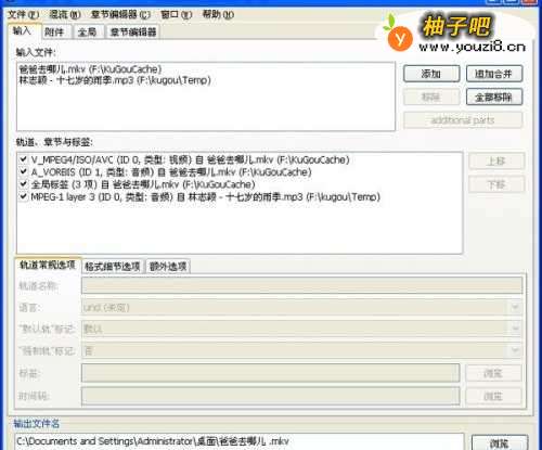 2添加完成,直接点击“开始混流”就是,把音乐文件添加到视频中的另外一个音轨上或声道上,在播放器播放视频时,选择左右音轨或者左右声道时,一个是视频原始声音,一个是添加的音乐声音。