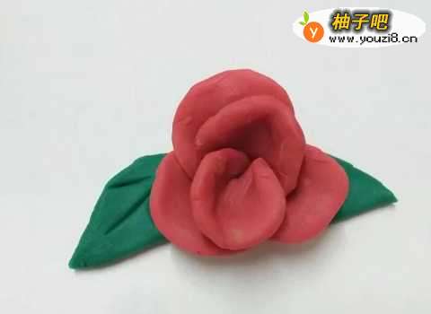8把两片叶子粘在花瓣的下面,花朵就做好了。