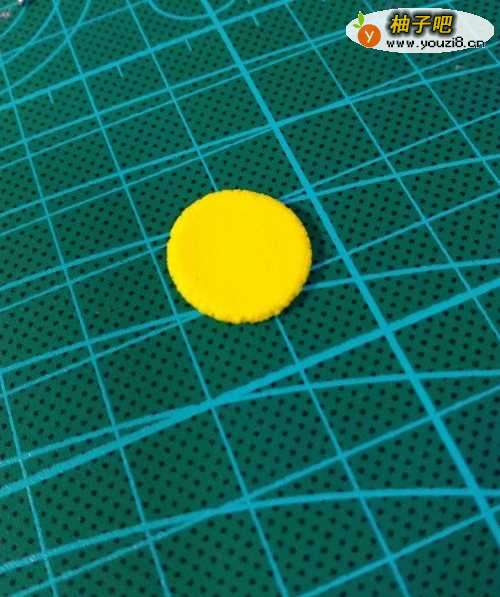 6用黄色粘土做一个圆片,作为绿毛虫的肚皮
