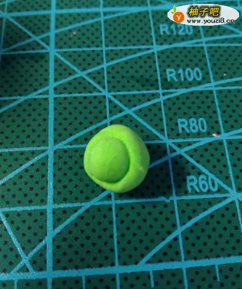 取黄绿色粘土,搓成一个小球,做出绿毛虫的身体