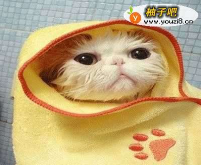 6给猫咪洗澡结束后要立马用干毛巾包住猫咪,吸一下猫咪毛发上的水分, 用猫咪专用烘干机把猫咪皮毛吹干,以免受凉。