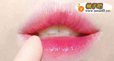 用棉签或手或者唇刷向外一层一层晕染开来,能打造更自然的咬唇妆。不要让口红和气垫遮的部分的分界线太明显。