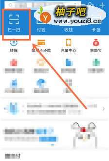 在手机上打开支付宝程序以后,在首页就能看见扫描二维码的标志,左上角第一个。