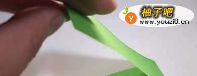 3接着取其中一个纸条,短边对折一次,如图所示。