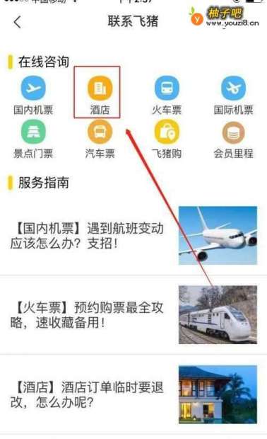 5接着跳转到联系飞猪的页面,选择要咨询的项目,如酒店。