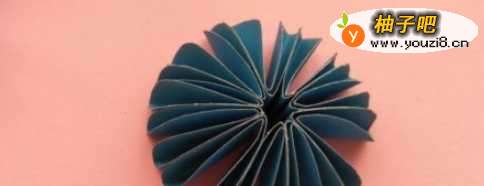 4下面将这些折叠好的纸张粘起来,粘好以后,就是折纸雨伞的伞面了,这样来调整好,尽可能的呈现出圆形来。