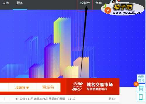 3点击完成跳转回万网首页,从右上角找到控制台选项,点击进去。
