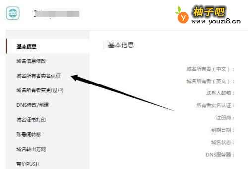 6也可以点击右侧的管理,在左侧找到域名所有者实名认证进行操作