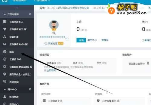4点击左侧的域名选项。