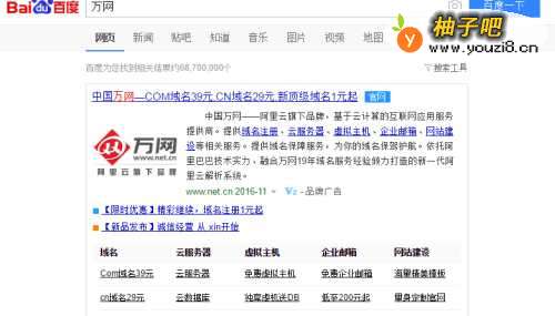 首先,我们从百度搜索万网,找到万网的网站,也可以从书签或者历史记录里面点击进去。