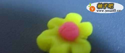 8其次再搓个小圆放到花的中央。
