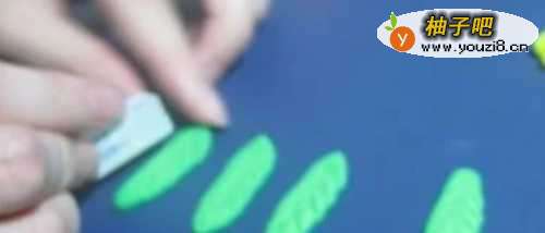 9再次开始细画叶子,把准备做叶子的压扁,用卡片划上叶脉。