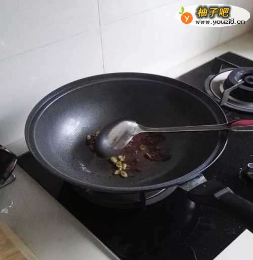 2待葱花泛黄,香味出来后放入适量酱油,炒一下,然后放入少量水,放水是为了待会炒辣椒和肉时不会糊锅。
