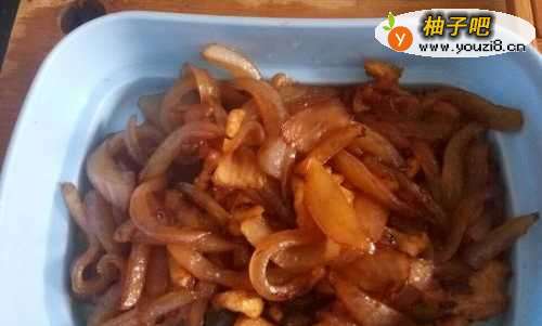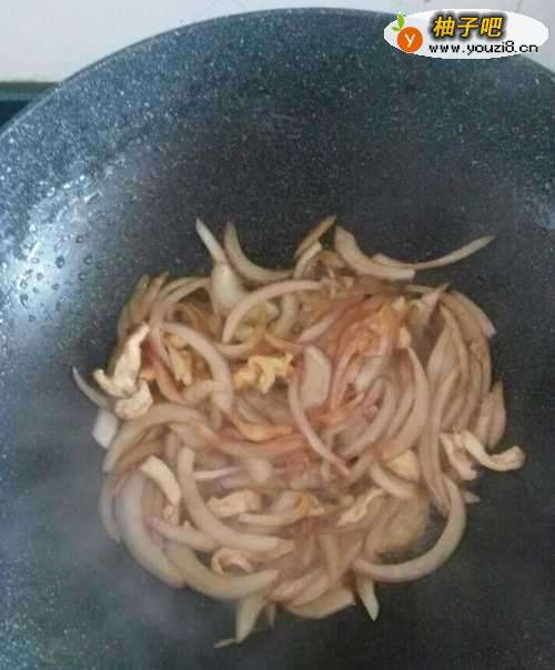 5第五步:待洋葱炒好后,倒入瘦肉,一起翻炒几下,撒适量花椒和鸡精,翻炒几下后,出锅。炒下道菜啦~~