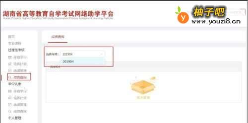 登录后进入首页 → 点击【成绩查询】显示报考的课程学习完成成绩,如下图所示: