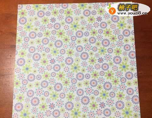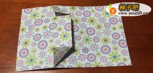 5中间部分的彩纸稍往左翻一下,将右边的正方形部分对角折叠,使出现X折痕。