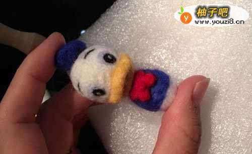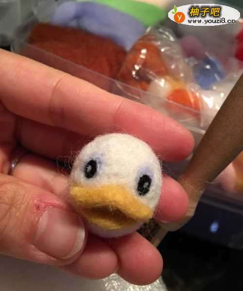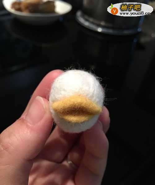 2加上嘴巴鹅黄色羊毛戳两片嘴巴